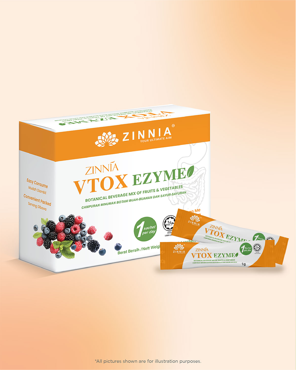 ZINNIA VTOX EZYME is formulated using a combination of 7 natural active ingredients that work together to support gentle detox and better gut health: